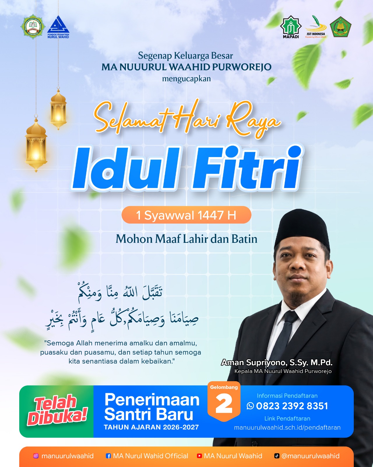 Alamat : Jln. Besole-Krandegan Km. 04 Bayan,Purworejo, Jawa Tengah. Madrasah Aliyah Nuurul Waahid Purworejo Islamic Boarding School 3 Tahun Hafal Al-Qur'an 30 Juz